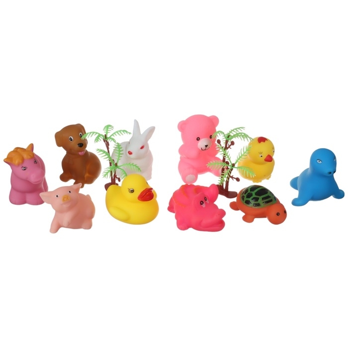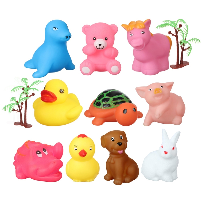 Набор резиновых игрушек для ванны «На острове», с пищалкой, 10 шт, Крошка Я