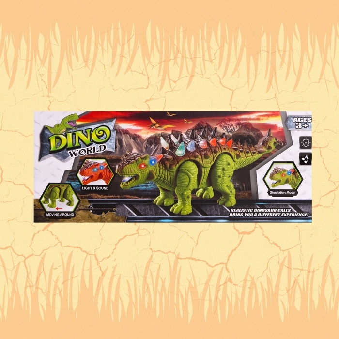 - Древний хищник умеет ходить, у него ярко светятся спина и рот, а ещё он издаёт пронзительный рёв, совсем как настоящий динозавр — ребёнку непременно понравится.