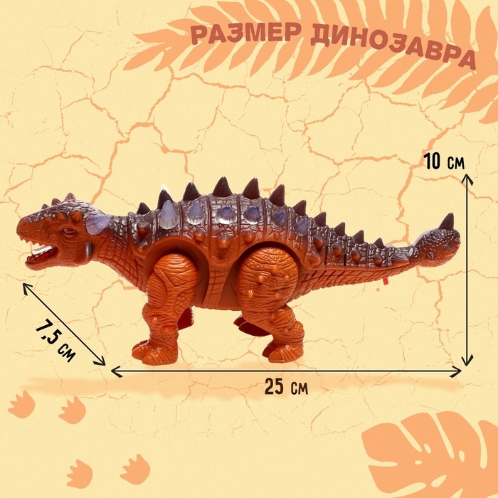 Динозавр «Анкилозавр» работает от батареек, свет и звук, цвет коричневый