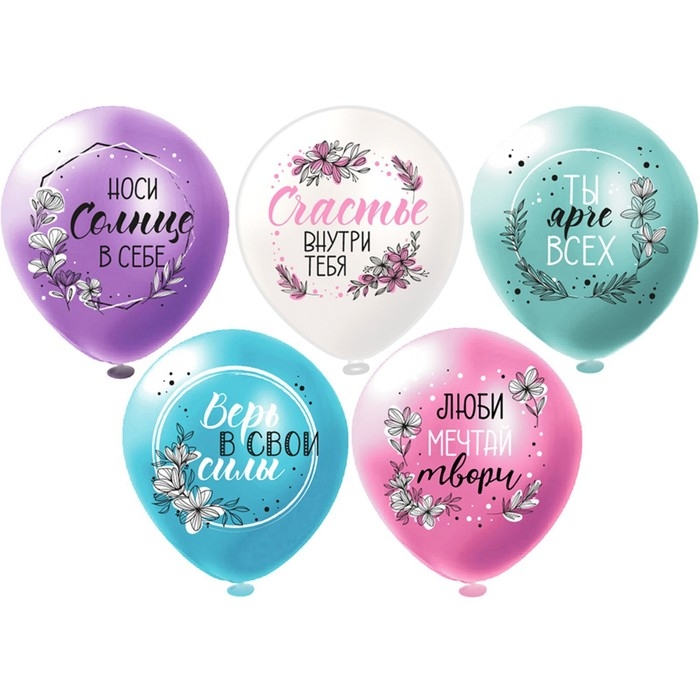 Шар латексный 12'' «Пожелания для неё», 5 дизайнов, 1-сторонний, набор 25 шт., МИКС