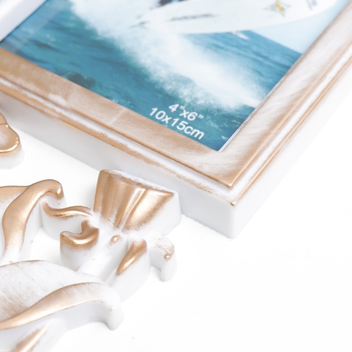Фоторамка пластик на 3 фото 10х15 см "Лотосы" золотисто-белый 36х27 см