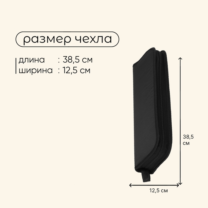 - Размер чехла: 38,5 × 12,5 × 5 см.