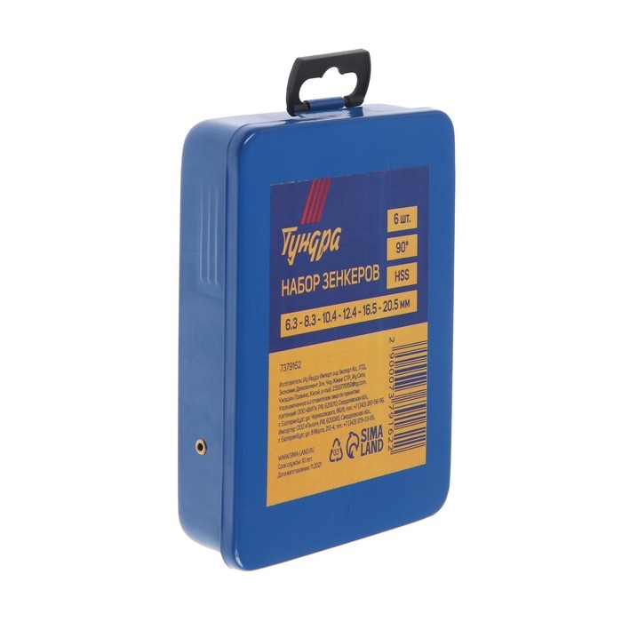 Набор зенкеров ТУНДРА, 90°, HSS, 6.3 - 8.3 - 10.4 - 12.4 - 16.5 - 20.5 мм, 6 шт.