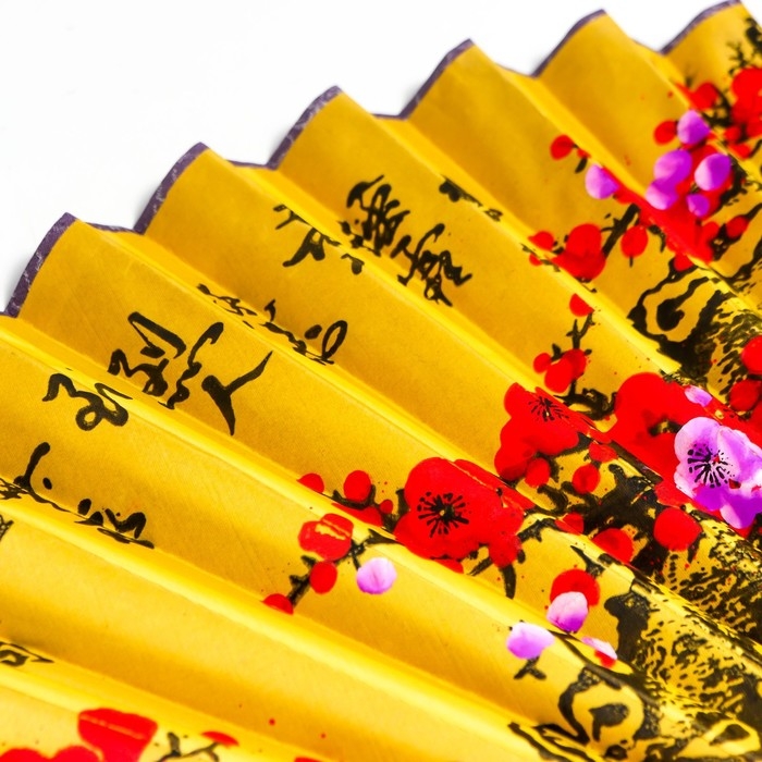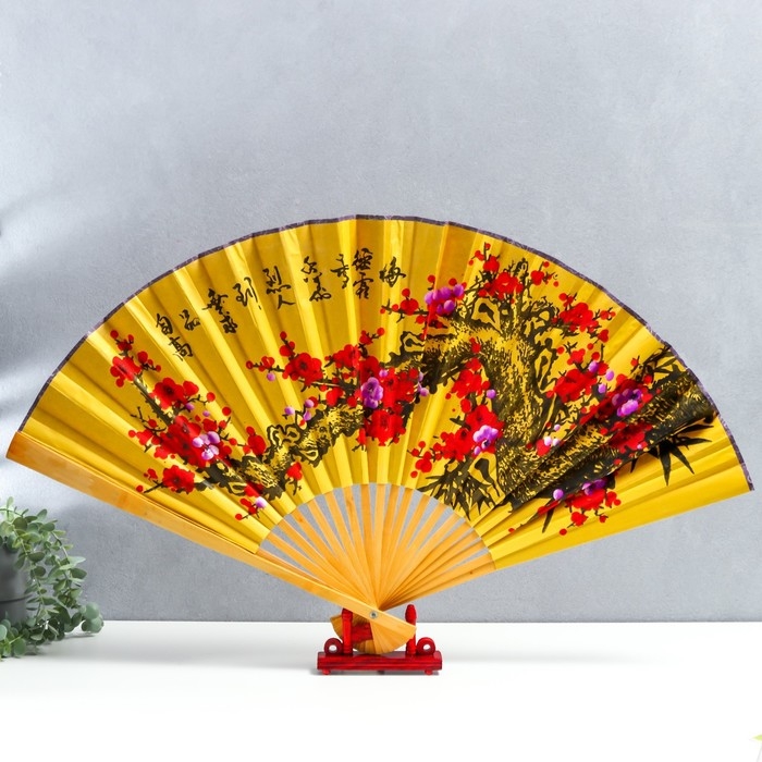 Веер бамбук, текстиль h=50 см "Сакура" жёлтый