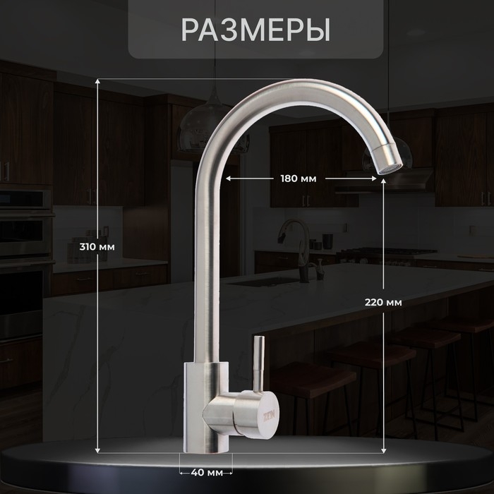 Смеситель для кухни ZEIN Z2386, однорычажный, картридж 35мм, нержавеющая сталь, сатин