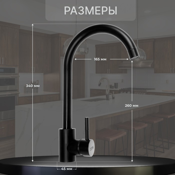Смеситель для кухни ZEIN Z2387, однорычажный, картридж керамика 35 мм, нерж. сталь, черный