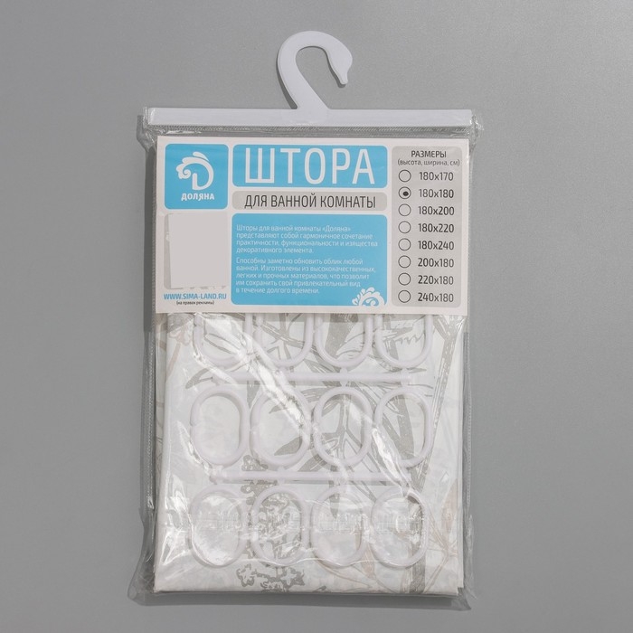 Штора для ванной SL Home, с люверсами, полиэстер, 180×180 см