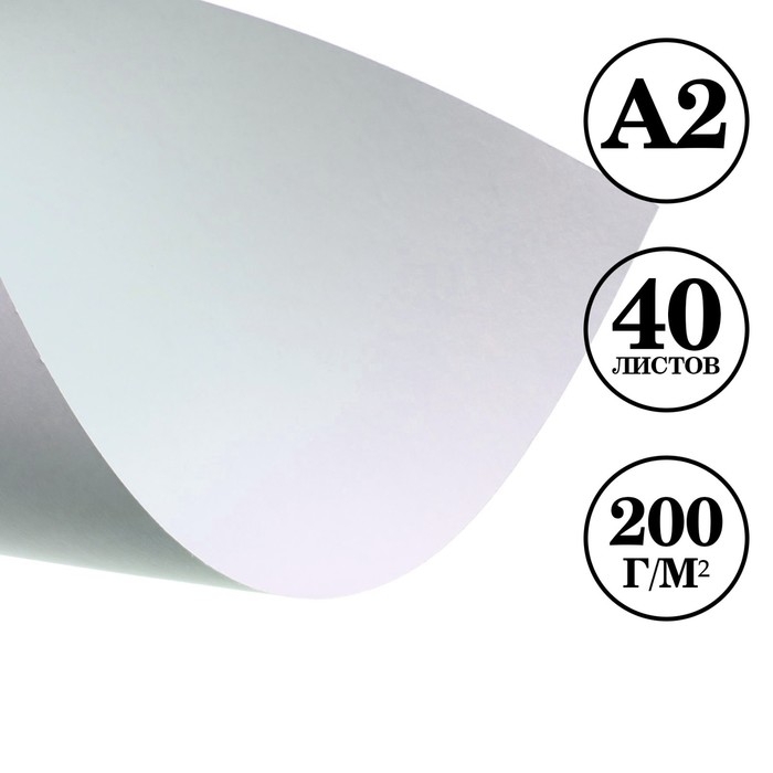 Бумага для акварели А2, 40 листов Calligrata, блок 200 г/м2, рисовальная