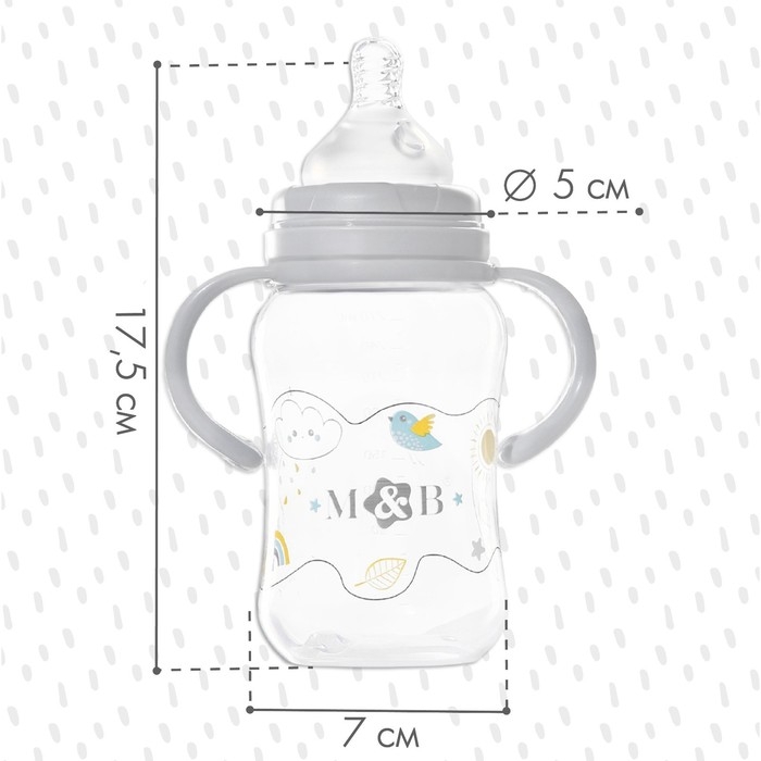 Бутылочка для кормления, широкое горло, с ручками, 150 мл, цвет серый