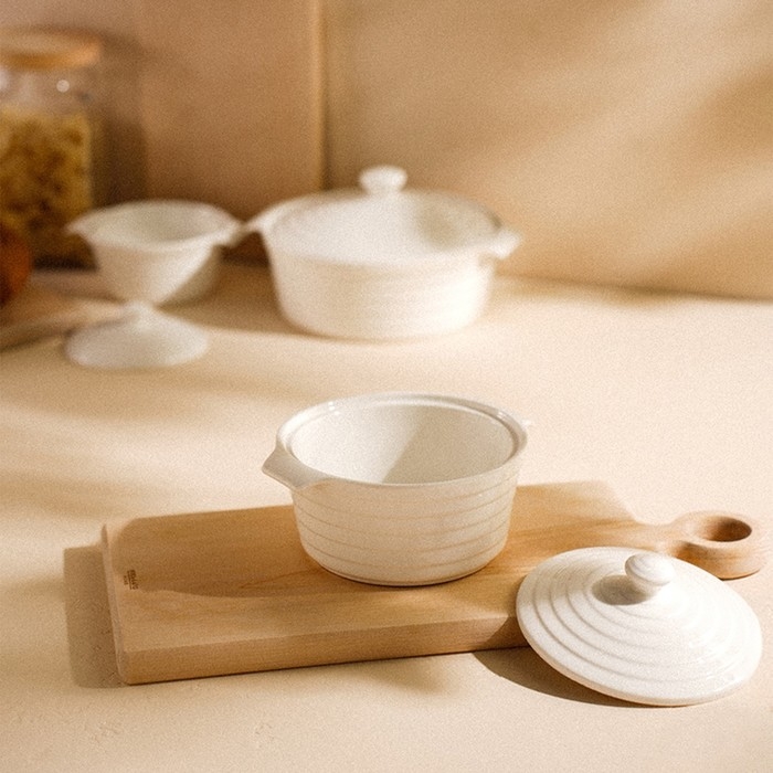 - Эстетика и функциональность: Белый цвет и лаконичный дизайн делают кастрюлю украшением любого стола.