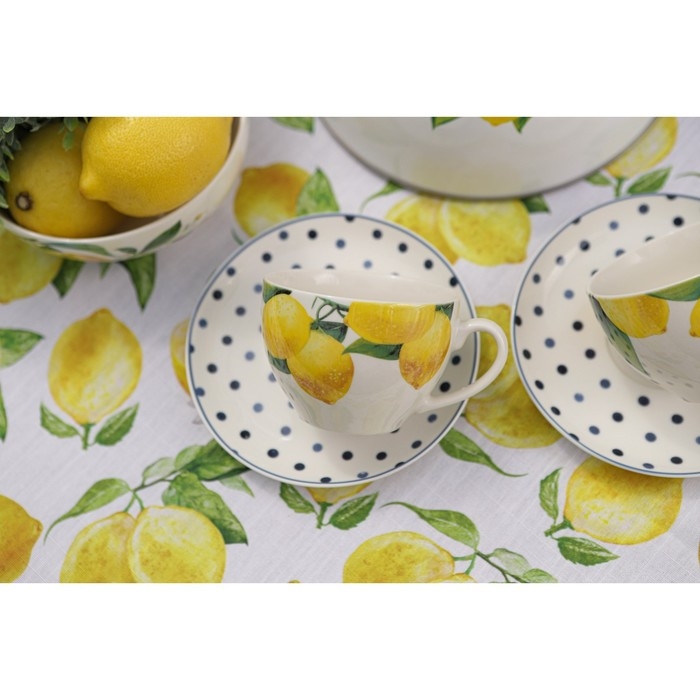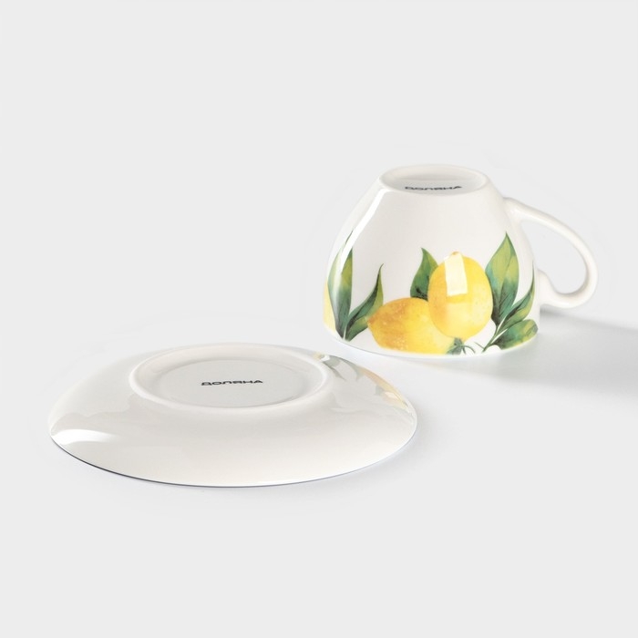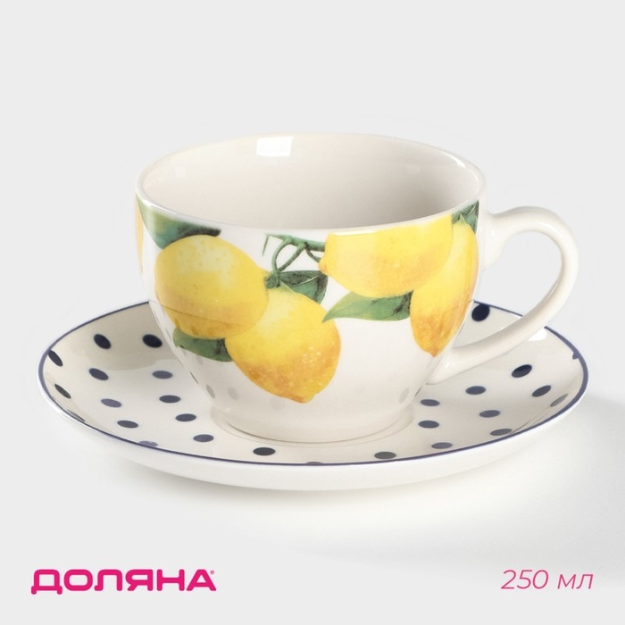 Чайная пара Доляна «Лимон», 2 предмета: чашка 250 мл, блюдце d=15 см