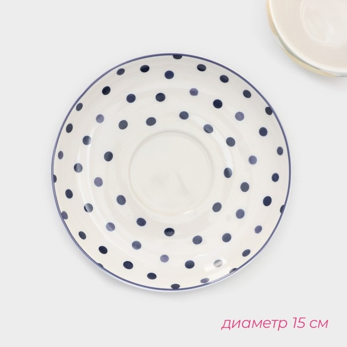Чайная пара фарфоровая Доляна «Лаванда», 2 предмета: чашка 250 мл, блюдце d=15 см, цвет белый