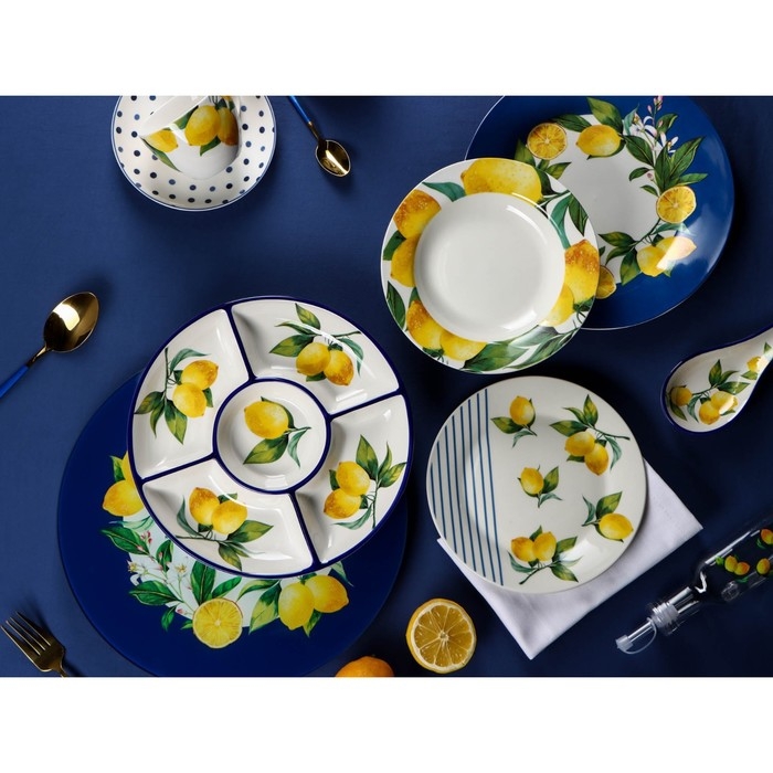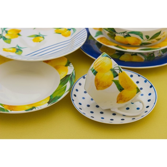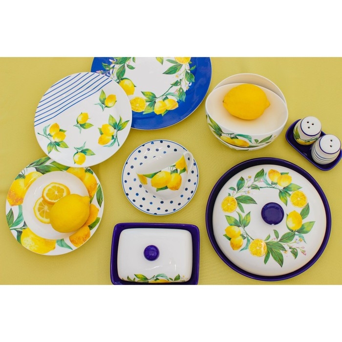 Посуда серии «Лимоны» от торговой марки Доляна изготовлена из качественного доломита. Благодаря оригинальному дизайну изделия гармонично дополнят сервировку стола, а также прекрасно подойдут в качестве подарка. Посуда выполнена в ярких тонах, что позволит вписать её практически в любой интерьер.