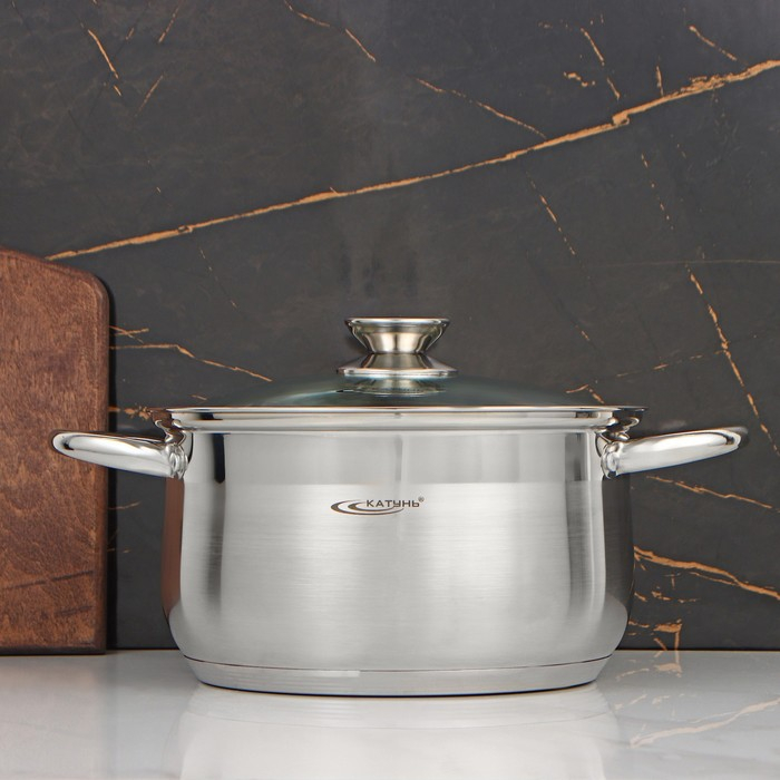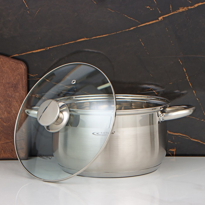 Кастрюля «Диана», 6 л, d=24 см, капсульное дно, стеклянная крышка, индукция