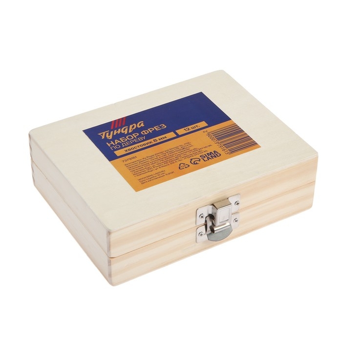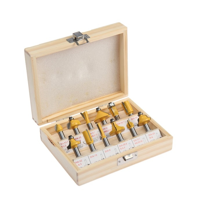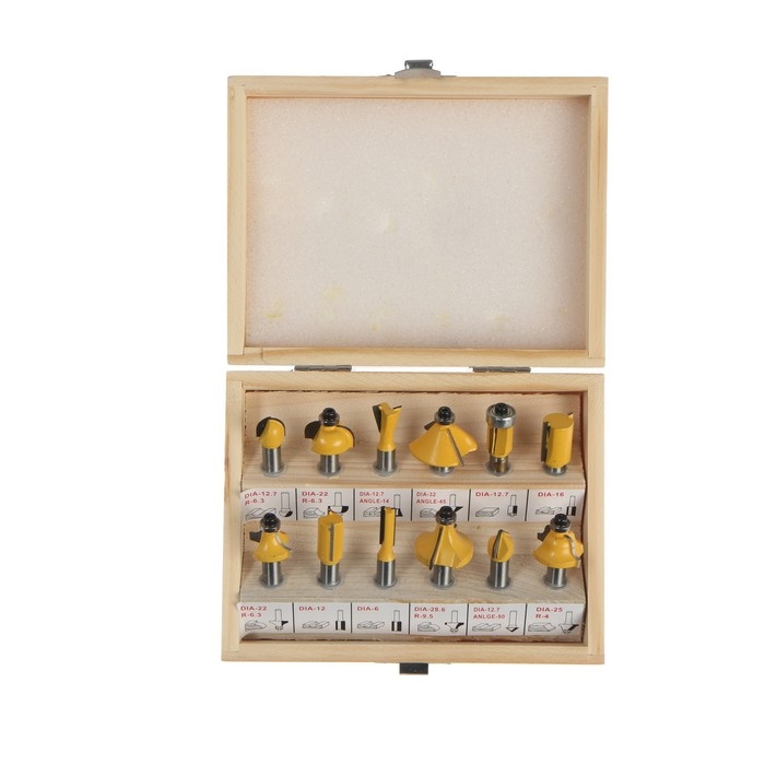 Набор фрез по дереву ТУНДРА, деревянный ящик, хвостовик 8 мм, 12 шт.