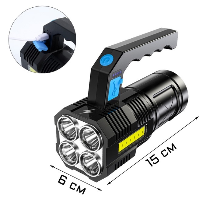Фонарь светодиодный аккумуляторный ручной, XPE, боковой 5 Вт COB, 1200 мАч, 6 режимов, USB