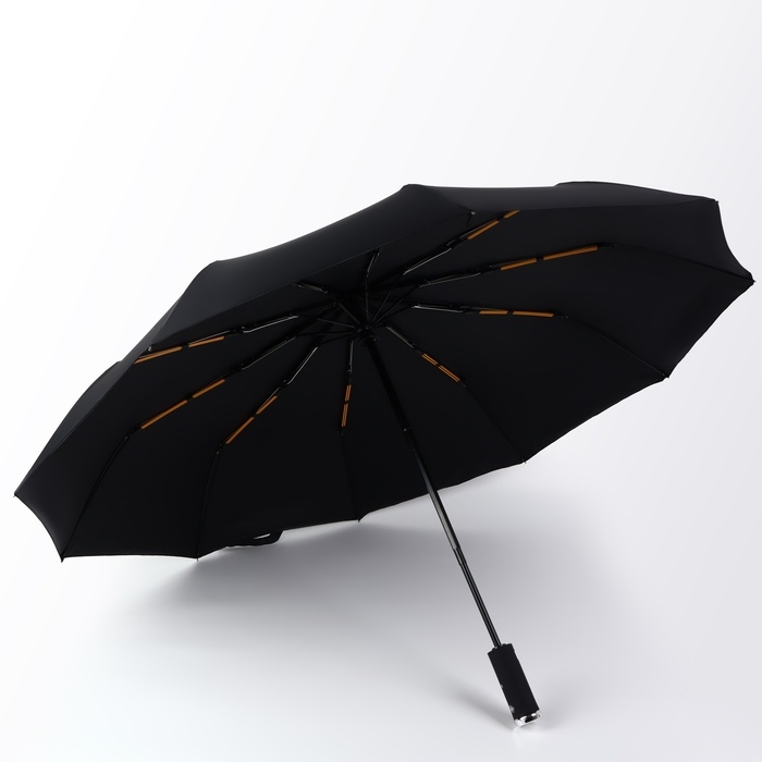 Зонт автоматический «Однотонный», с фонариком, вращающаяся ручка, 3 сложения, 10 спиц, R = 52/60 см, D = 120 см, цвет чёрный