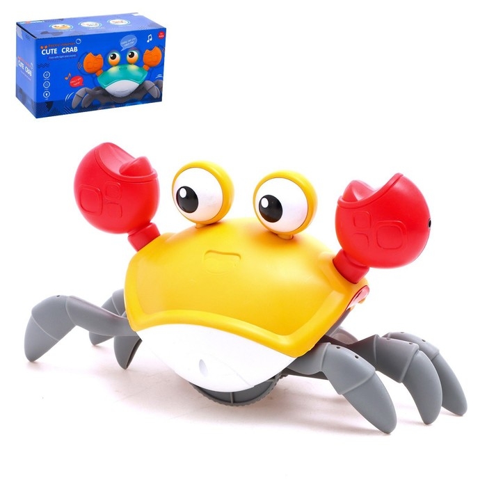 Каталка музыкальная «Краб», свет, звук, цвет жёлтый