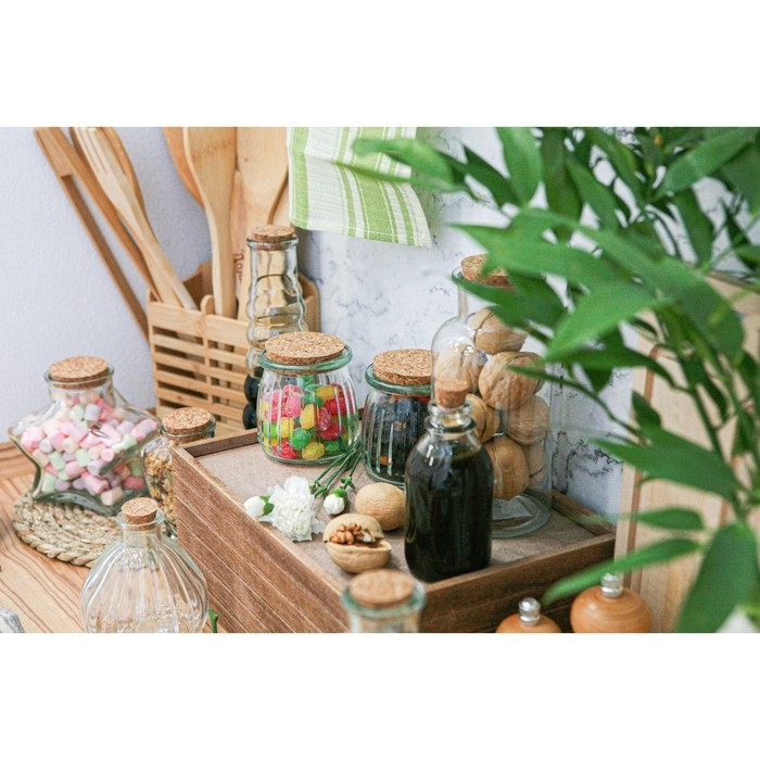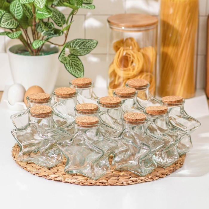 Набор стеклянных баночек для сыпучих продуктов с пробковой крышкой Доляна «Парфе. Звезда», 350 мл, 11×6×11,5 см, 12 шт