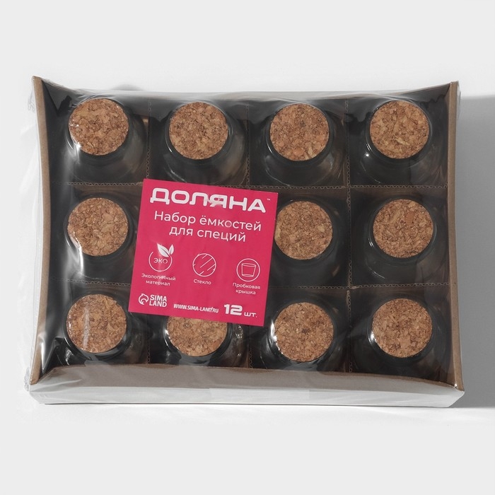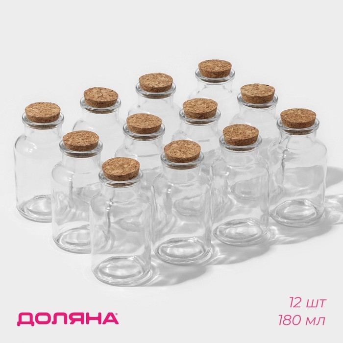 Набор баночек стеклянных для специй с пробковой крышкой Доляна «Парфе», 180 мл, 11×5 см, 12 шт
