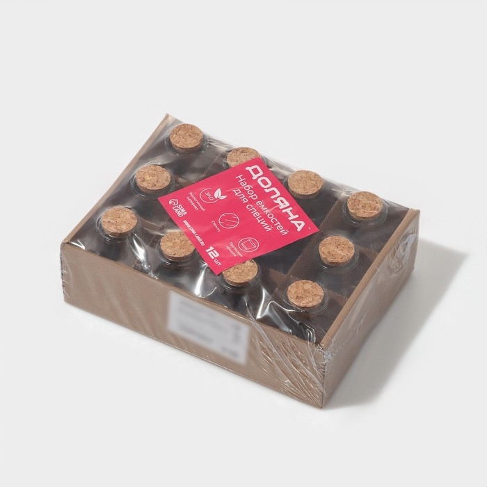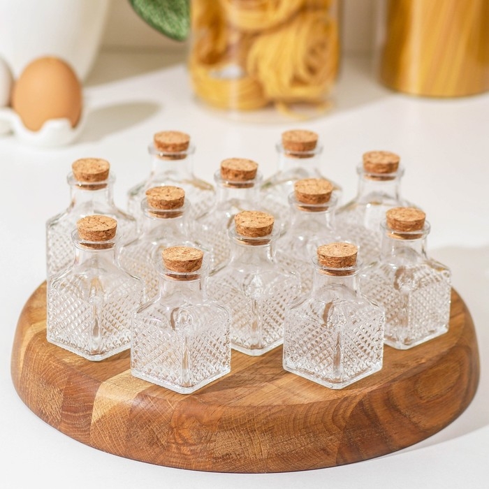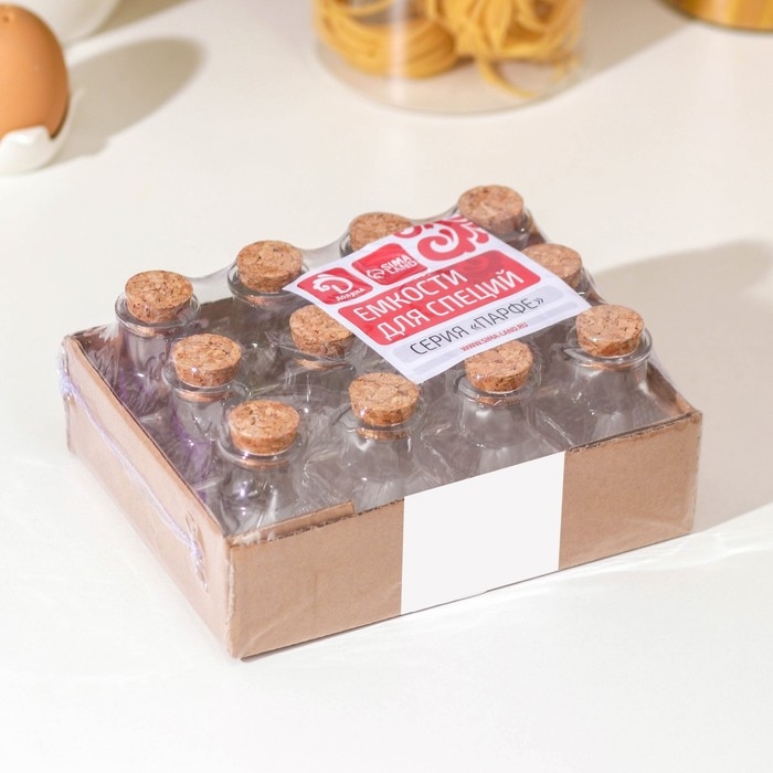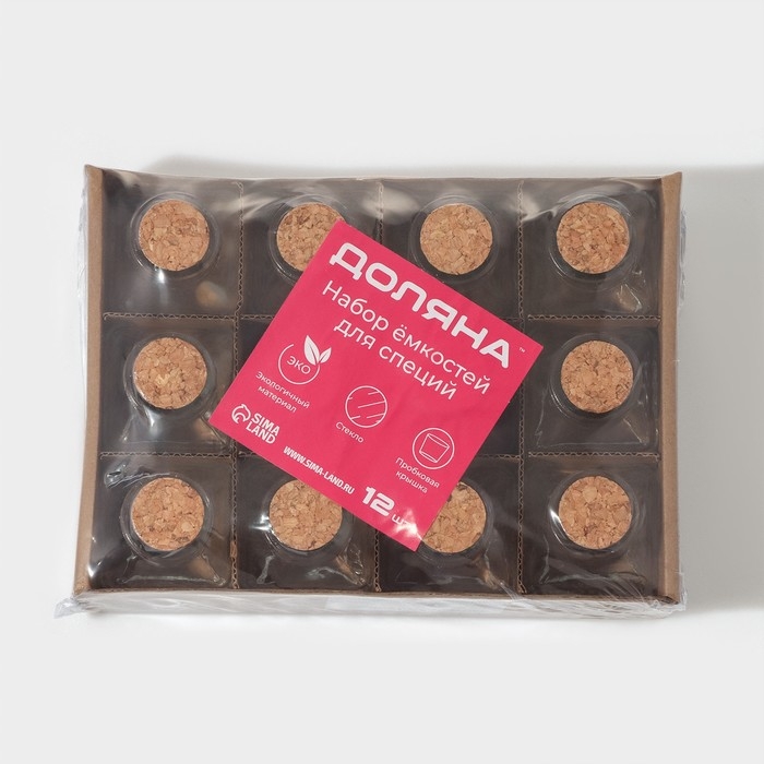 Набор баночек стеклянных для специй с пробковой крышкой Доляна «Парфе», 50 мл, 4,5×4,5×6,8 см, 12 шт