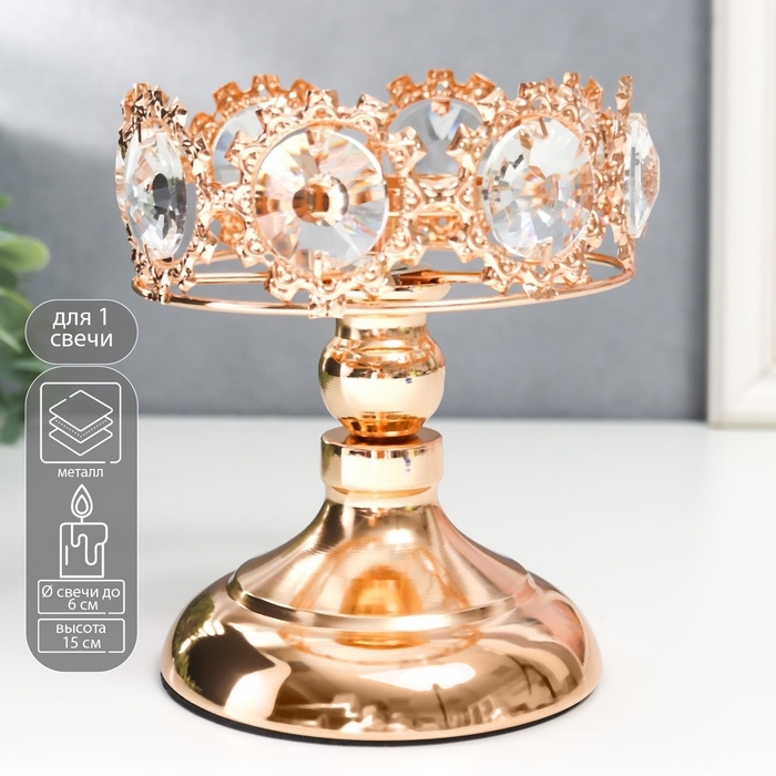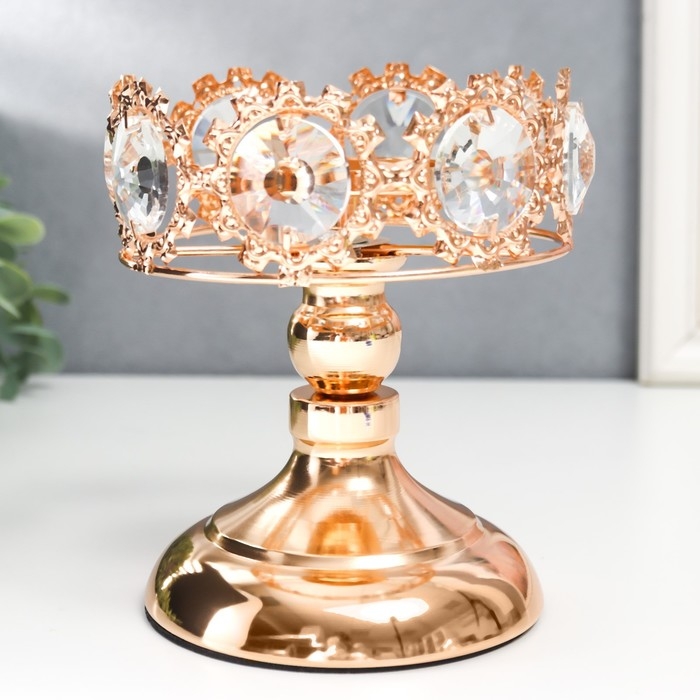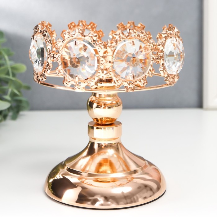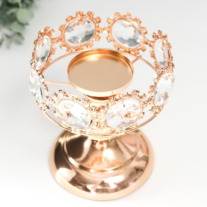 Подсвечник металл на 1 свечу "Кристаллы - Тиара" золото 15х12х12 см