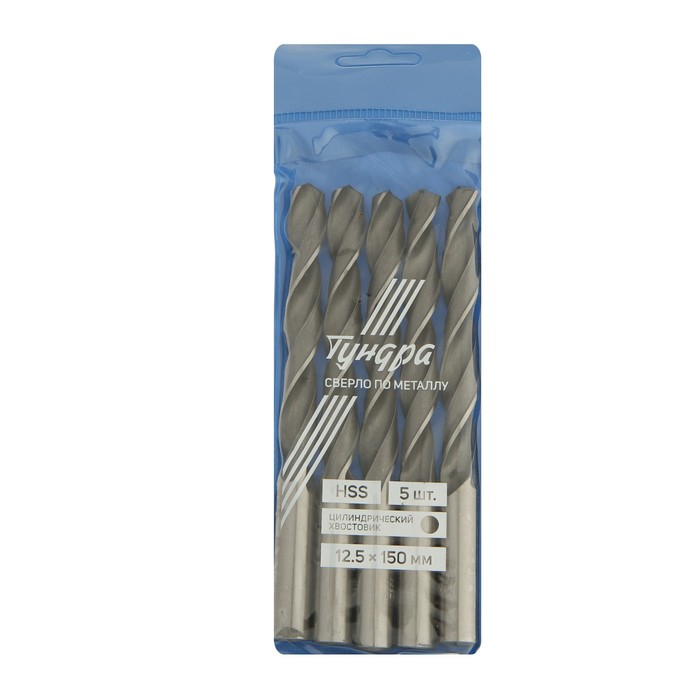 Сверло по металлу ТУНДРА, HSS, цилиндрический хвостовик, 12.5 х 150 мм, 5 шт.