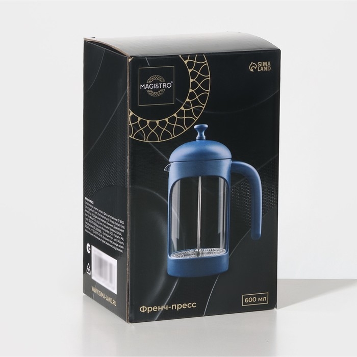 Чайник заварочный френч - пресс Magistro «Хельсинки», 600 мл, стекло, цвет тёмно-синий