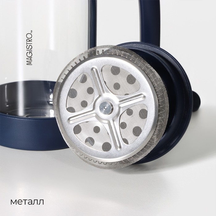 Чайник заварочный френч - пресс Magistro «Хельсинки», 350 мл, стекло, цвет тёмно-синий