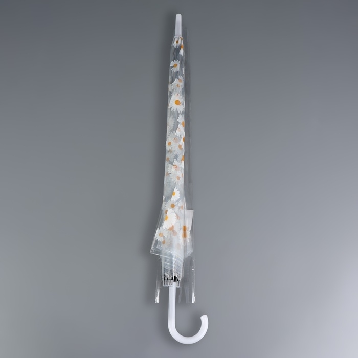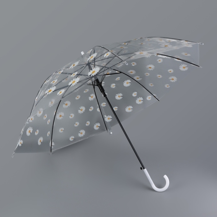 Зонт - трость полуавтоматический «Ромашка», 8 спиц, R = 45/55 см, D = 110 см, цвет прозрачный/белый