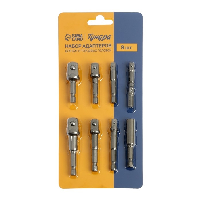 Набор адаптеров для бит и торцевых головок ТУНДРА, 1/4" 3/8" 1/2", 25 - 70 мм, 9 шт.
