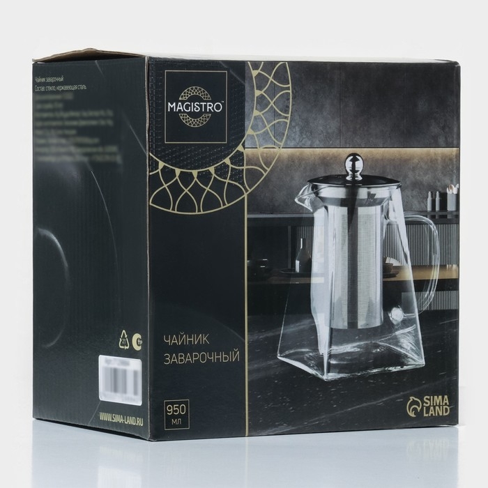 Чайник стеклянный заварочный с металлическим ситом Magistro «Дарси», 950 мл