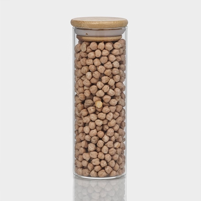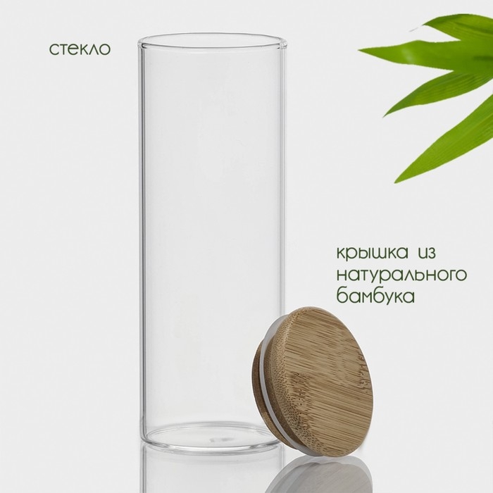 Банка стеклянная для хранения сыпучих продуктов «Эко», 300 мл, 5,5×15,5 см, с бамбуковой крышкой