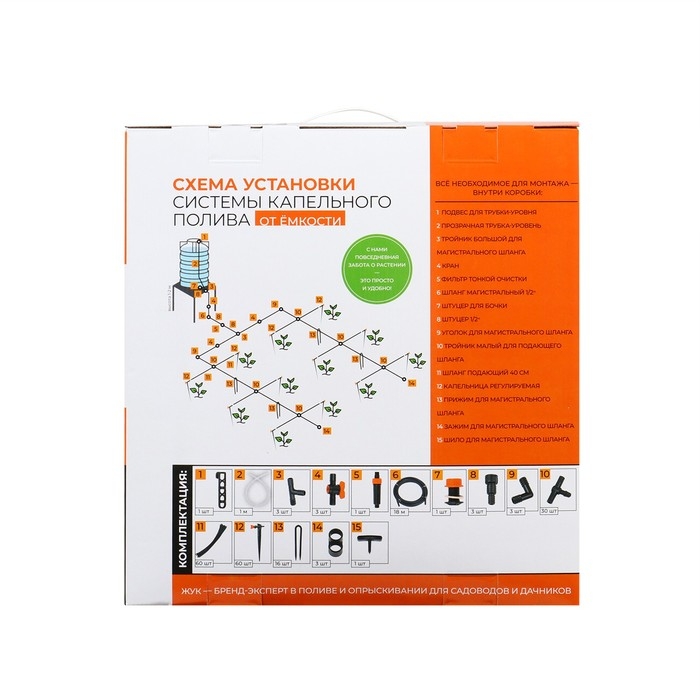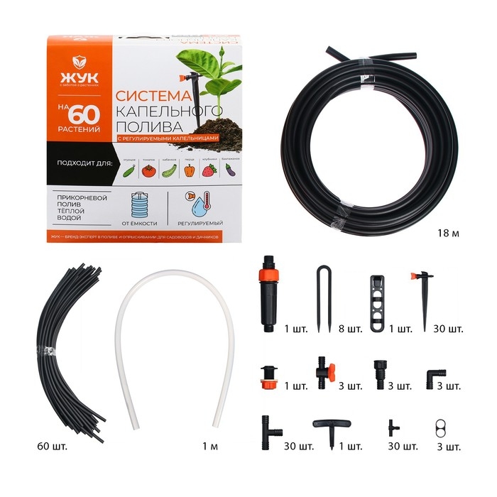 Набор капельного полива от ёмкости, с регулируемыми капельницами, 60 растений, «Жук»