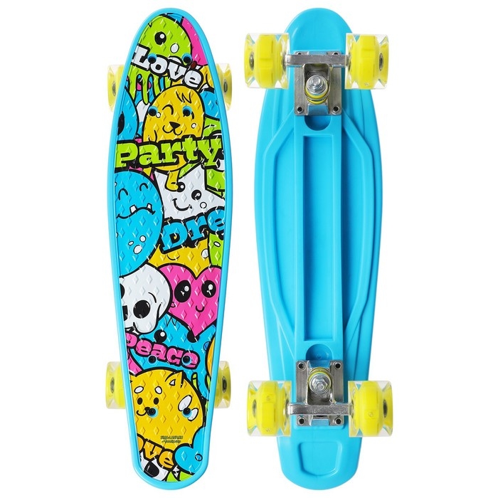 Пенниборд ONLYTOP «Рожицы», 56 х 16 см, колёса световые PU 60 х 45 мм, ABEC 7, алюминиевая подвеска