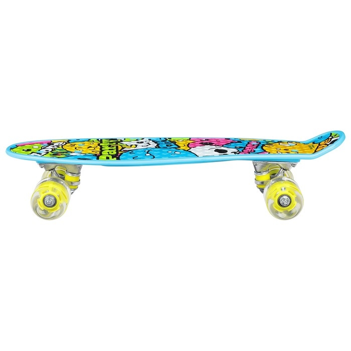 Компактный и манёвренный скейтборд – отличный выбор для юных начинающих скейтбордистов. С ним ребёнок научится держать равновесие и разовьёт мышцы ног. Дека с ребристой поверхностью обеспечивает хорошее сцепление с подошвой обуви и не позволяет ногам скользить по доске.