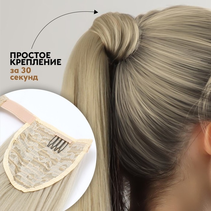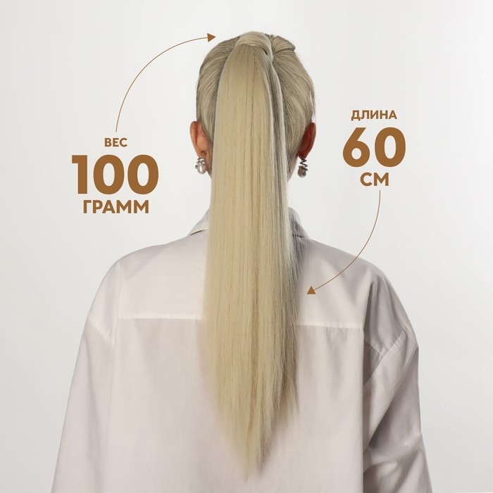 Хвост накладной, прямой волос, на резинке, 60 см, 100 гр, цвет холодный блонд(#SHT88B)
