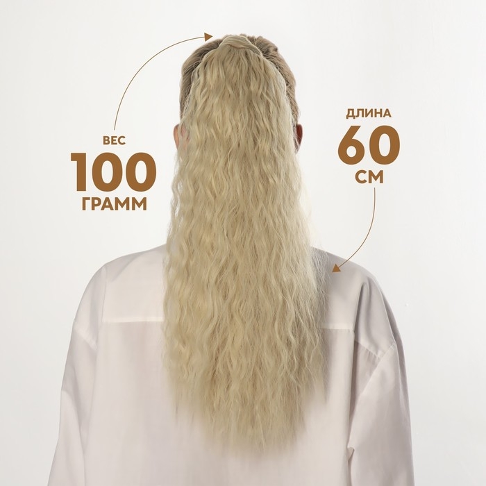 Хвост накладной, волнистый волос, на резинке, 60 см, 100 гр, цвет холодный блонд(#SHT88В)