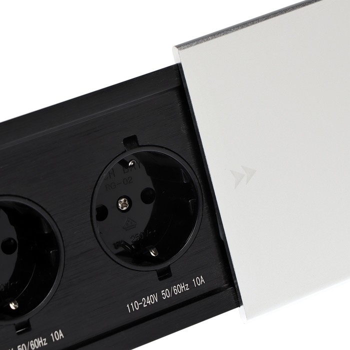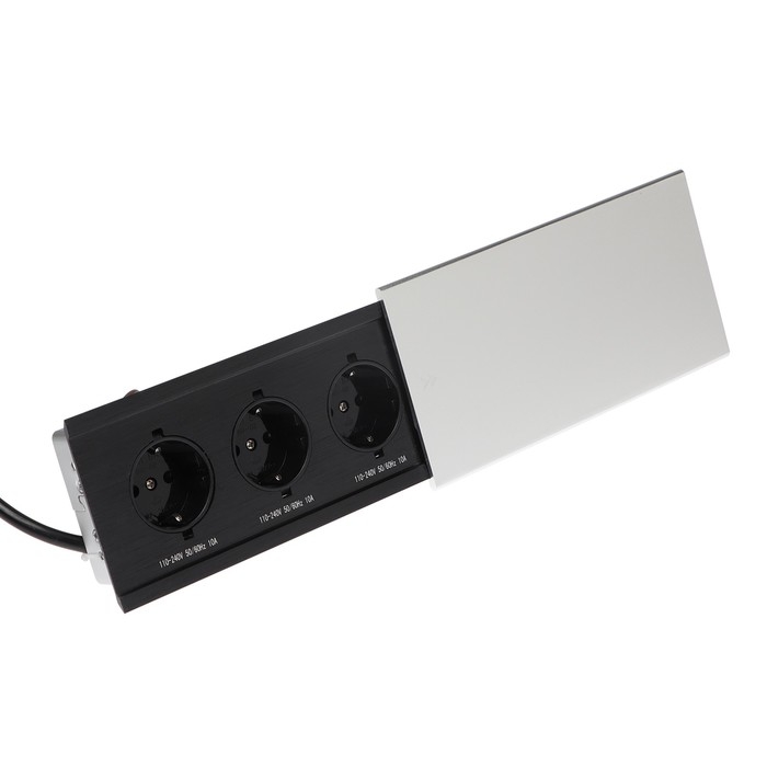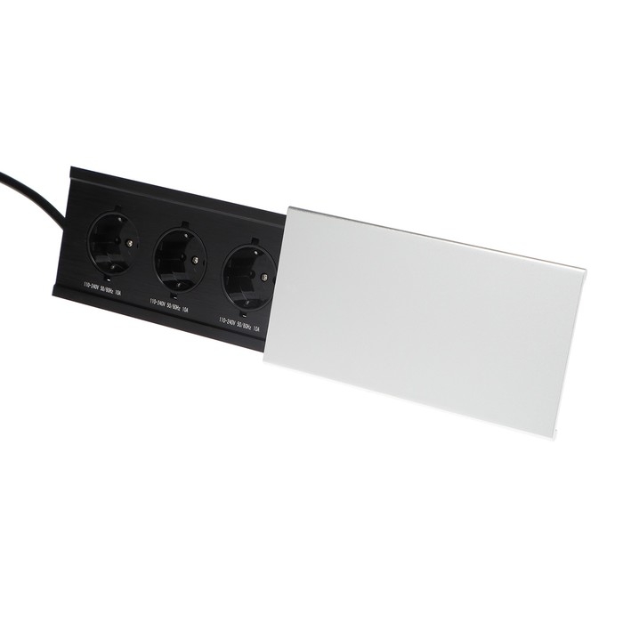 Блок розеточный в стол, сдвижная крышка, 10А, 3 розетки, провод 1.8 м, серебристый