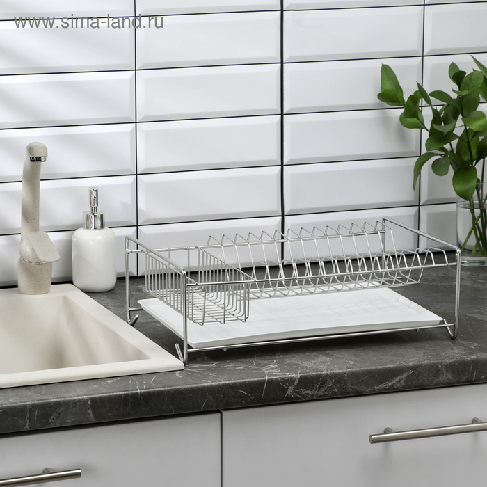 Сушилка для посуды с поддоном, 40×23×15 см, цвет хром