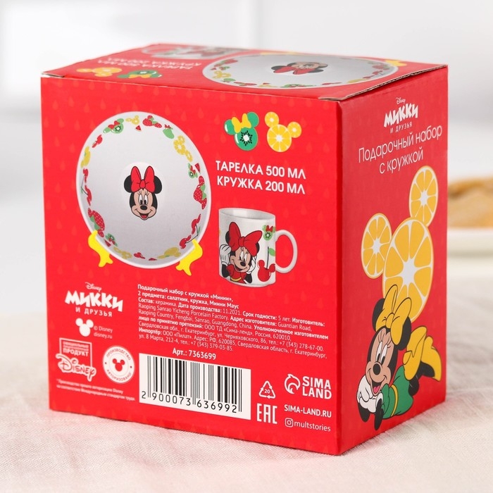 Набор детской посуды, 2 предмета: салатник, кружка, Минни Маус