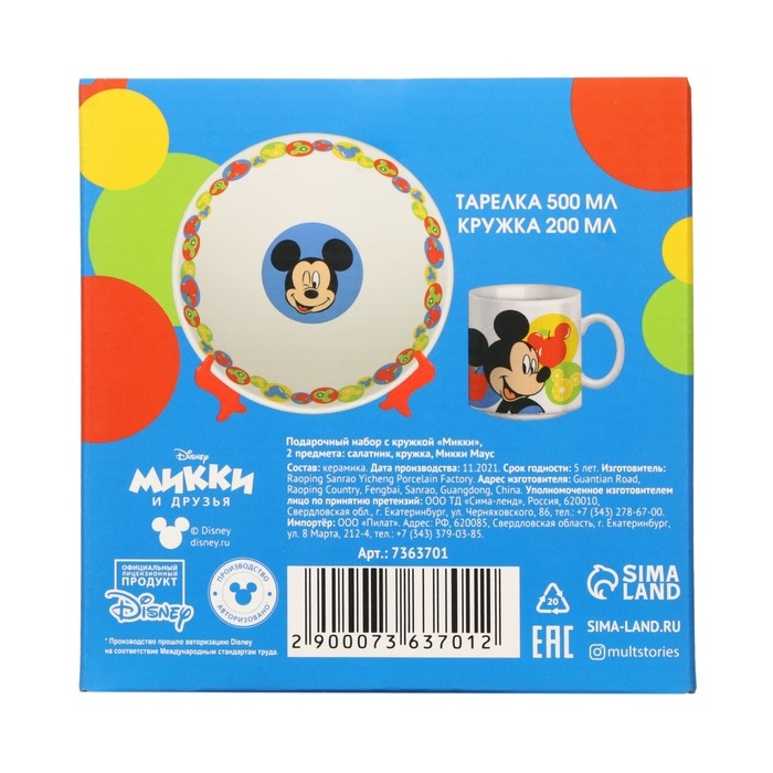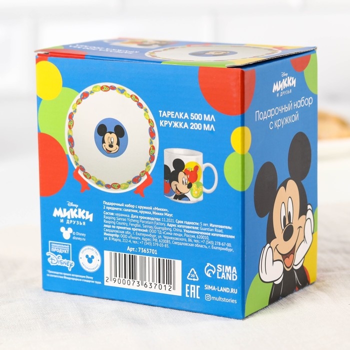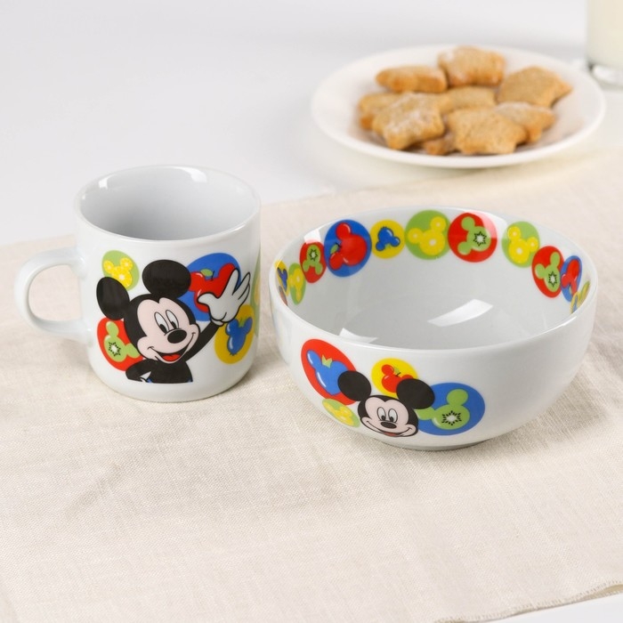 Набор детской посуды, 2 предмета: салатник, кружка "Микки", Микки Маус и его друзья