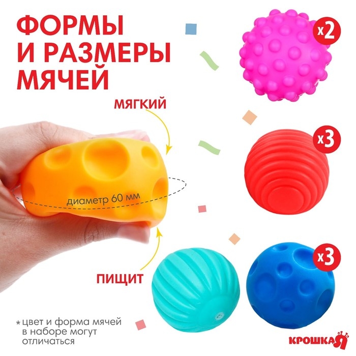 Набор развивающих тактильных мячиков «Цирк», с пищалкой, 9 шт, Крошка Я