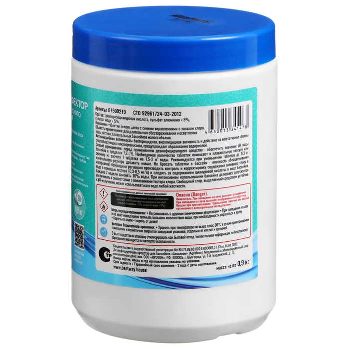 Дезинфектор Bestway быстрый стабилизированный хлор в таблетках обеззараживает и осветляет воду частных плавательных бассейнов малого объема. Бактерицидная, вирулицидная активность и действие на вегетативные формы спорообразующих микроорганизмов, предупреждает образование водорослей. Свободный хлор, выделяемый средством, устойчив к УФ-излучению, может использоваться в воде любой жесткости.