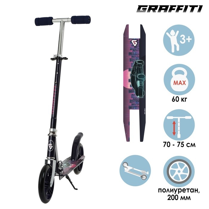 Самокат GRAFFITI, складной, колёса PU 200 мм, ABEC 7, цвет чёрный