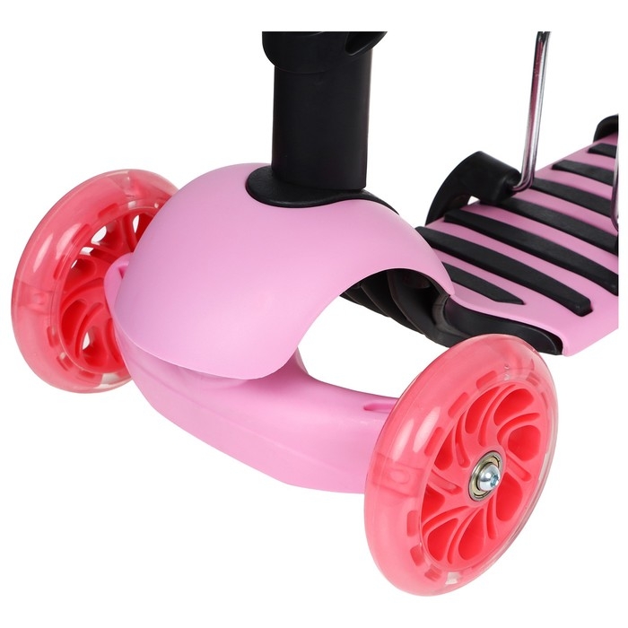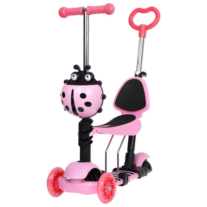 При установленном сиденье – это беговел, благодаря такой функции ребёнок развивает навыки координации и укрепляет мышцы ног. Если сиденье снято – это полноценный самокат, который позволяет прорабатывать мышцы верхних, нижних конечностей, мышц спины и брюшной полости.