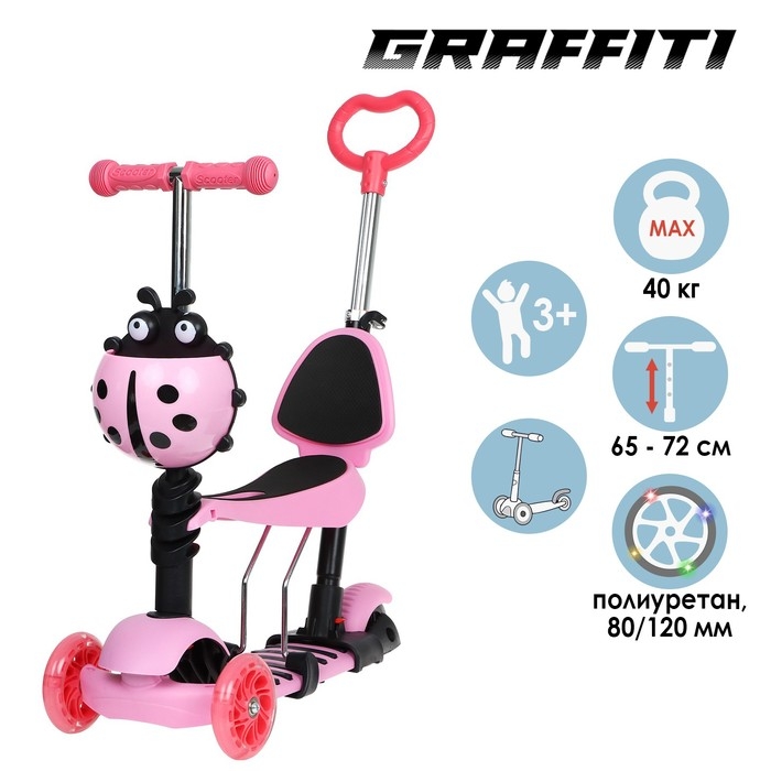 Самокат 5 в 1 GRAFFITI, колёса световые PU 120/80 мм