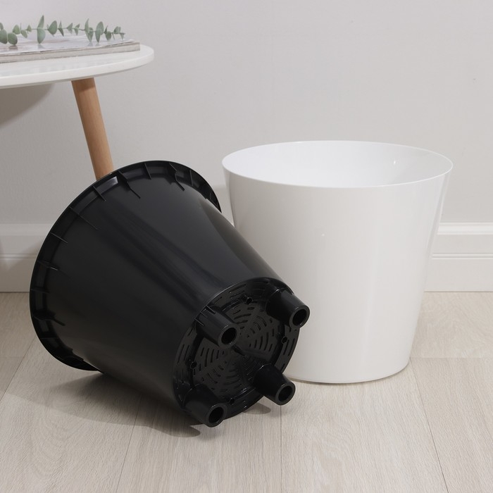 Кашпо для цветов со вставкой «Стив», 650 мл, d=11,5 см, h=10,5 см, цвет белый ротанг