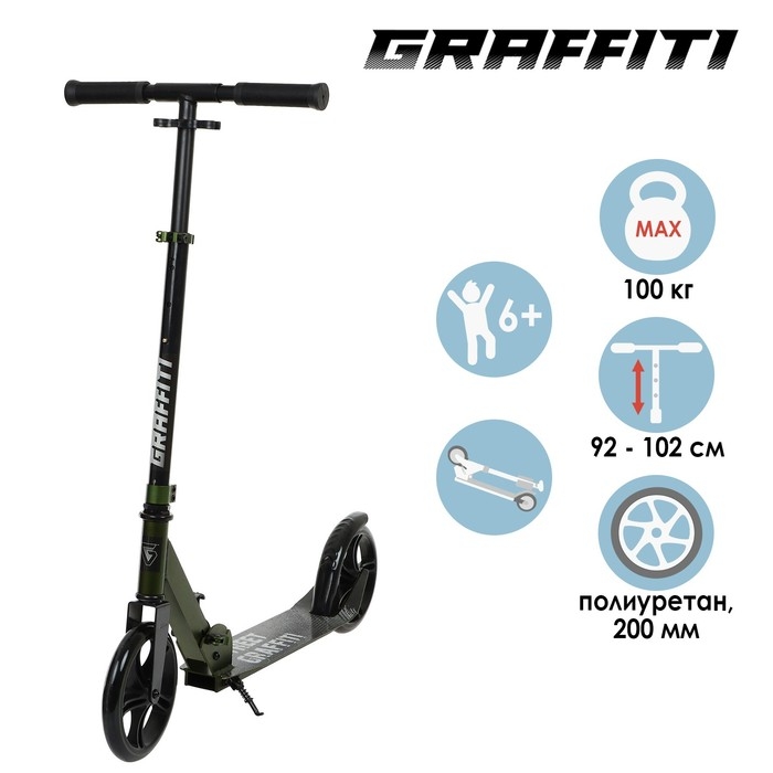 Самокат городской GRAFFITI, складной, колёса PU 200, 86A, ABEC 9, подножка, цвет хаки