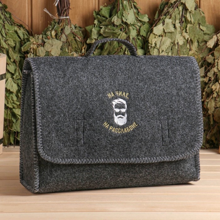 Набор банный "Портфель" 5 предметов "На чиле, на расслабоне (мужик с бородой)", серый